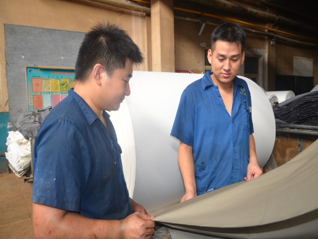面三車間生產(chǎn)的功能性整理品種較多,使打底機(jī)染色面臨不小的難度。胡國(guó)濤通過對(duì)設(shè)備進(jìn)行仔細(xì)觀察研究,跟維修師傅反復(fù)討論,在軋車前安裝固定導(dǎo)布軸,解決了軋車前起折子問題。再有,在紅外線烘室內(nèi)加入彎輥并調(diào)節(jié)張力,使產(chǎn)品通過打底機(jī)時(shí)不再“卡脖子”;以產(chǎn)品“棉錦c21*n100d+40d”為例,其一等品率由改進(jìn)前的91%提升到改進(jìn)后的96.5%,而這只是他眾多改進(jìn)成果中的一項(xiàng)。