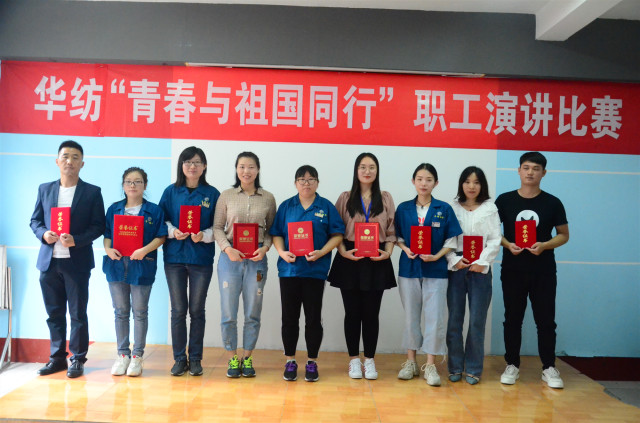 9月19日,公司舉辦了主題為“青春與祖國(guó)同行”的職工演講比賽活動(dòng),經(jīng)過預(yù)賽、復(fù)賽程序進(jìn)入最后決賽的九位選手,在比賽中用款款深情的講述,詮釋了華紡員工熱愛祖國(guó)、傾心事業(yè)的情懷。