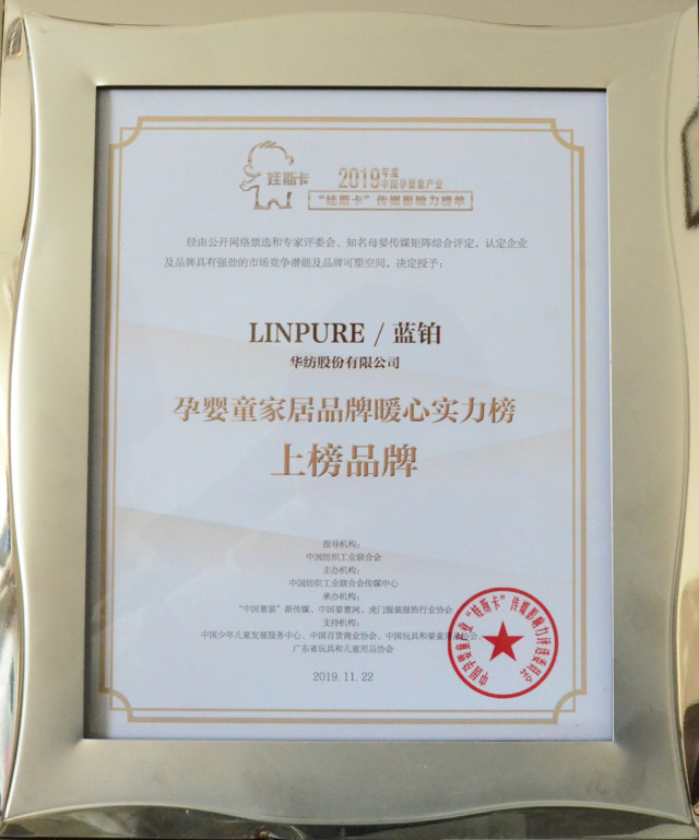 導(dǎo)讀:日前,公司LINPURE/藍(lán)鉑榮登“孕嬰童家居品牌暖心實力榜”,認(rèn)定企業(yè)及品牌具有強(qiáng)勁的市場競爭潛能及品牌可塑空間。