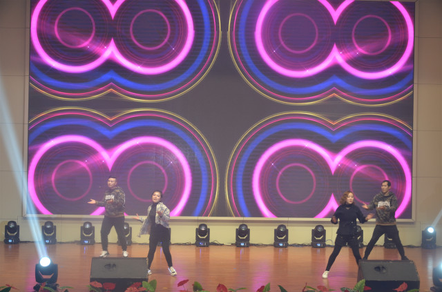 今年的迎新文藝匯演有三個顯著特點(diǎn):一是員工和員工子女參與人數(shù)有所增加;二是語言類節(jié)目均為公司員工原創(chuàng),舞蹈類節(jié)目的員工原創(chuàng)占比達(dá)一半以上;三是現(xiàn)場三次微信互動搖獎,使現(xiàn)場觀眾幾乎悉數(shù)參與到互動當(dāng)中,增加了晚會的親和力。