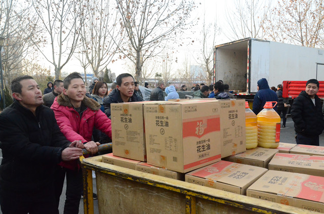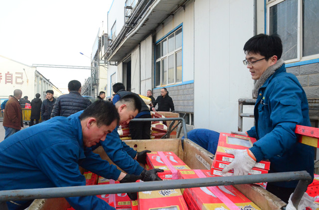 1月21日,公司主廠區(qū)廣場(chǎng)上再現(xiàn)熱烈氣氛,員工們以部門為單位,在這里領(lǐng)取公司為在崗員工和退休職工準(zhǔn)備的豬肉、花生油、大米等“年貨”,以體現(xiàn)對(duì)廣大員工建設(shè)企業(yè)、奉獻(xiàn)事業(yè)的慰問之情。