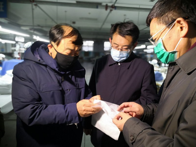 2月7日,濱州市委書記、市人大常委會(huì)主任佘春明,濱城區(qū)委副書記、區(qū)長張瑞杰,濱州市工信局黨委書記、局長王道臣,來到公司調(diào)研督導(dǎo)疫情防控、口罩生產(chǎn)和企業(yè)復(fù)工復(fù)產(chǎn)工作。
