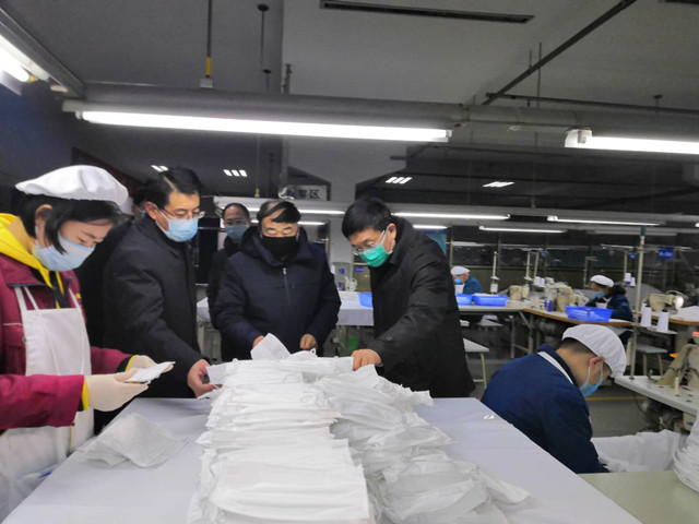 在公司口罩生產(chǎn)現(xiàn)場(chǎng),公司黨委書記、董事長王力民詳細(xì)介紹了公司在疫情防控方面所做的工作,以及當(dāng)前民用口罩生產(chǎn)產(chǎn)能和新增產(chǎn)能項(xiàng)目推進(jìn)情況,同時(shí)對(duì)公司其他板塊的復(fù)工復(fù)產(chǎn)準(zhǔn)備工作做了說明?,F(xiàn)場(chǎng)了解情況后,佘春明對(duì)公司節(jié)日期間組織部分員工提前復(fù)工生產(chǎn)口罩,積極踐行企業(yè)理念和社會(huì)責(zé)任,助力新型冠狀病毒疫情防控阻擊戰(zhàn),給予了充分肯定。他表示,口罩作為防護(hù)必需品,是各行業(yè)返崗復(fù)工的重要保障;企業(yè)要借力金融杠桿,加快項(xiàng)目立項(xiàng)和設(shè)備引進(jìn)進(jìn)度,千方百計(jì)改善生產(chǎn)條件,盡快提高生產(chǎn)供應(yīng)能力。