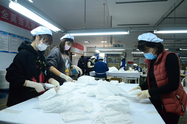 在此之前,公司已組織部分員工提前復工,投入疫情防控應急物資口罩生產(chǎn)當中。隨著印染、家紡成品等產(chǎn)業(yè)板塊恢復生產(chǎn),員工返崗率達95%以上。公司在嚴格規(guī)范做好信息排查、防疫宣傳、通風換氣、環(huán)境消毒、測量體溫、人員管控等疫情防控工作基礎(chǔ)上,廣大返崗員工積極投身生產(chǎn)工作,追求優(yōu)質(zhì)高效,為打贏疫情防控阻擊戰(zhàn)貢獻華紡力量。