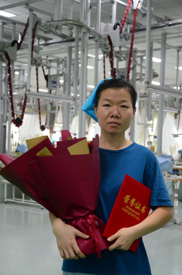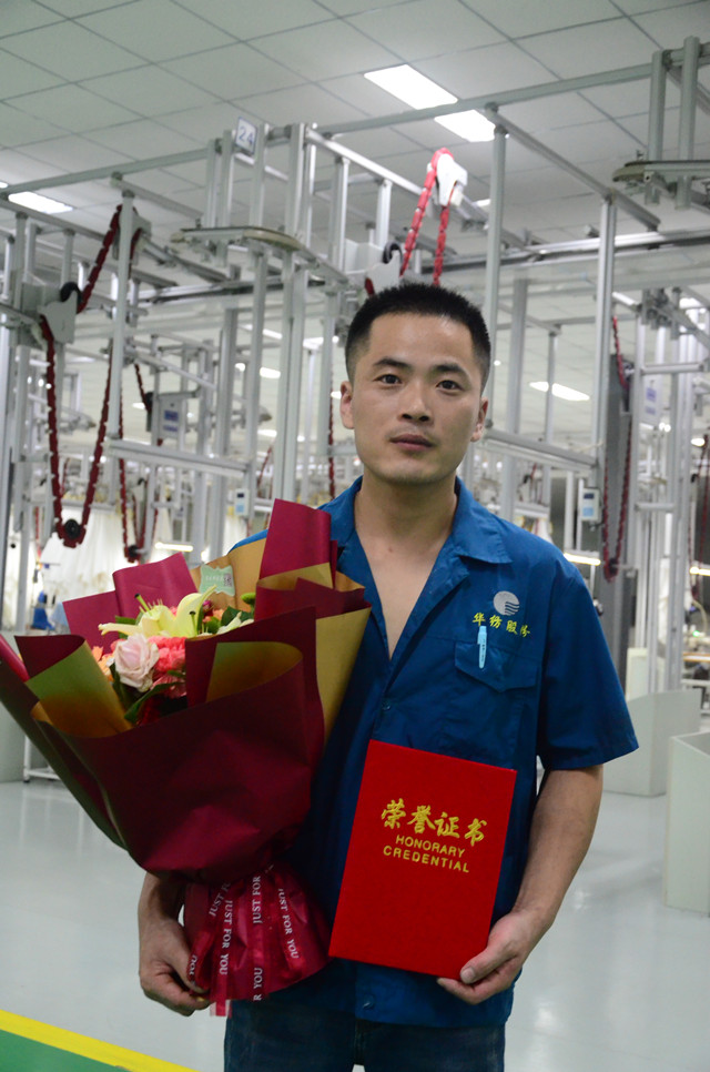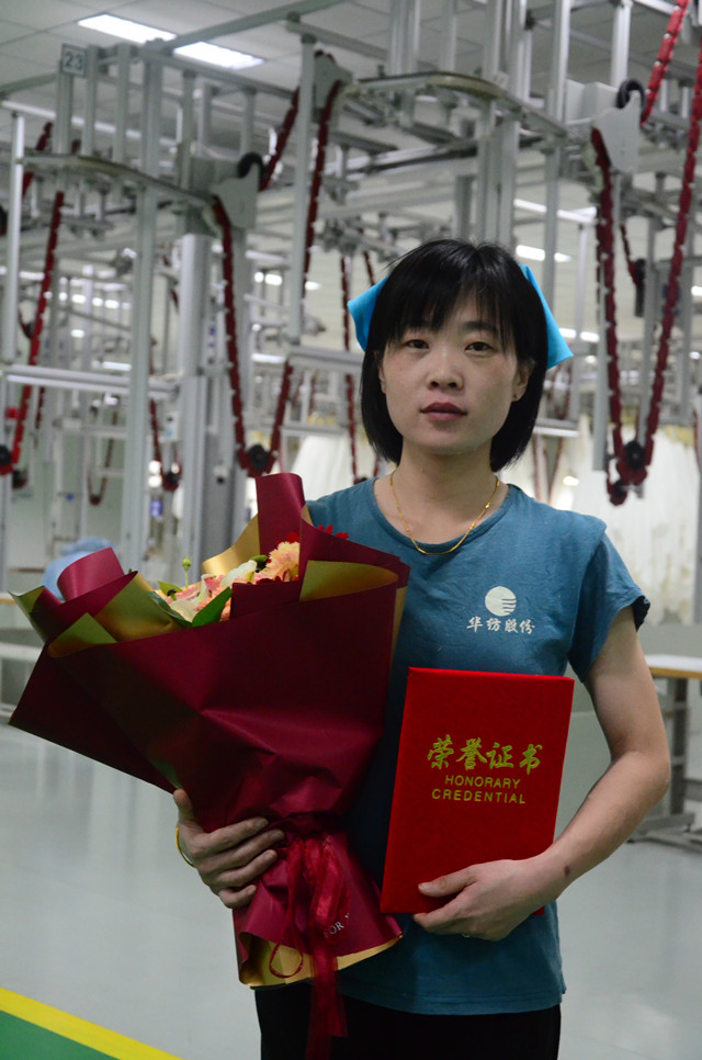 家紡成品車間勞動競賽總結(jié) 優(yōu)秀員工捧起大花束