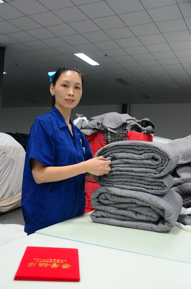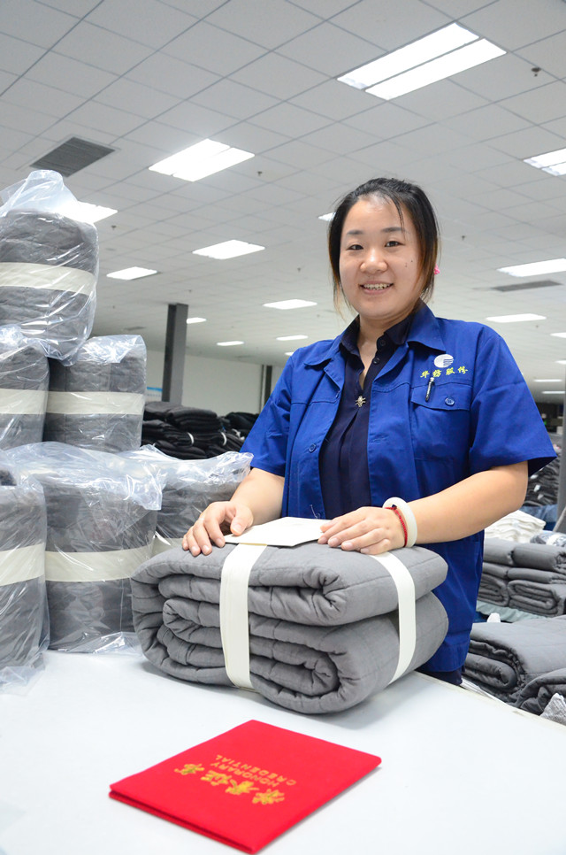 來自家紡成品車間的統(tǒng)計數(shù)據(jù)顯示,8月份,裁剪工段裁剪水洗被貨單計劃為15012件,實際完成18340件,效率提升22.1%;其中Q號絎棉每人每天計劃目標完成184件,實際完成216件,效率提升17.55%;K號絎棉每人每天計劃目標完成158件,實際完成199件,效率提升26.35%??p制工段的生產(chǎn)效率相比7月份效率,提升了11.97%,返修率:0.17%。后整工段完成基數(shù)提升5%后再提升10%的目標,其中驗整競賽產(chǎn)量基數(shù)為294件/人/天,實際完成331.1件/人/天,效率提升12.62%,完成了提升10%的競賽目標;包裝競賽產(chǎn)量基數(shù)為147件/人/天,目標產(chǎn)量161.7件/人/天,實際完成162件/人/天,提升了10.2%,完成了提升10%的競賽目標。