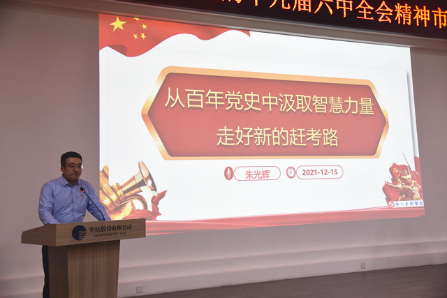 導(dǎo)讀:12月18日,市委宣講團(tuán)成員、市政協(xié)臺(tái)港澳僑和外事委員會(huì)副主任朱光輝來(lái)到公司,對(duì)黨的十九屆六中全會(huì)精神進(jìn)行專題宣講。