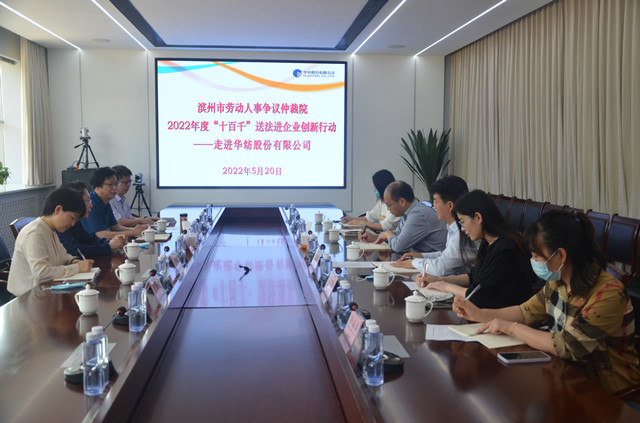 市勞動人事爭議仲裁院副院長翟瑞民、勞宏偉,調(diào)解仲裁二庭庭長孫靜,四級主任科員畢延軍等“送法服務(wù)隊”一行,在公司副總經(jīng)理趙玉忠、孫玉濤等陪同下,參觀了檢測中心、綜合辦公區(qū)、面料展廳、花布展廳、家紡展廳、創(chuàng)意設(shè)計中心、工程技術(shù)研究院等區(qū)域。雙方圍繞新形勢下構(gòu)建和諧勞動關(guān)系、推動企業(yè)整體發(fā)展等內(nèi)容,進行了深入交流與座談。