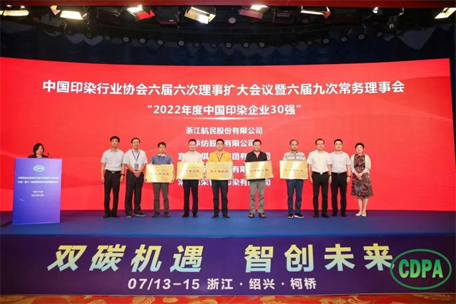 7月14日,中國印染行業(yè)協(xié)會六屆六次理事擴大會議暨六屆九次常務(wù)理事會在浙江紹興召開。會上,中國印染協(xié)會發(fā)布了“2022年度中國印染企業(yè)30強”名單,公司以在多方面的綜合成效躋身這一行列。