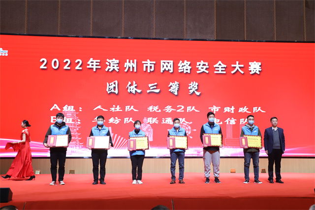 近日,首屆濱州市“技能之星”職業(yè)技能大賽——2022年濱州市網(wǎng)絡(luò)安全大賽頒獎典禮在渤海先進(jìn)技術(shù)研究院舉行。公司“華紡隊”獲本次大賽團(tuán)隊三等獎,崔乘耀獲個人一等獎,張航、張濤、邢訓(xùn)彬獲個人優(yōu)勝獎。