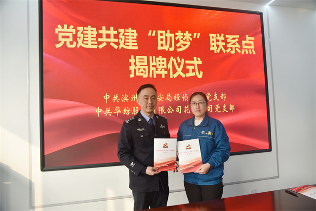 導(dǎo)讀:2月24日,華紡股份有限公司花布公司黨支部與濱州市公安局經(jīng)偵支隊(duì)黨支部開展黨建共建“助夢”聯(lián)系點(diǎn)簽約暨揭牌儀式。