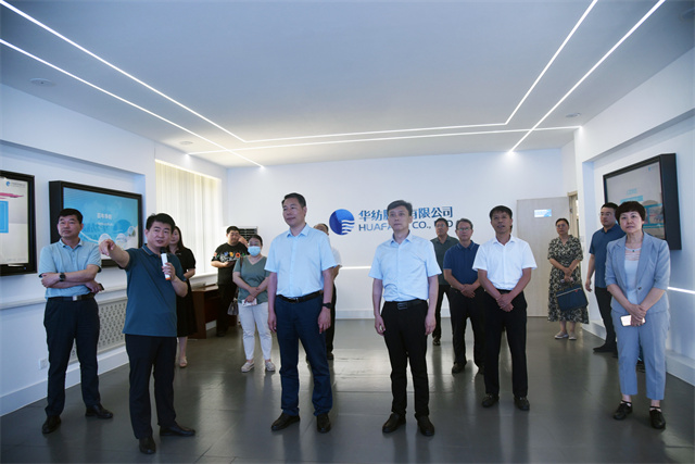隨后,在孫玉濤的陪同下,盧飛一行先后參觀了智云中心、檢測中心、財務(wù)部、集中辦公區(qū)、面料公司、家紡公司、花布公司、家紡研發(fā)、研究院等處。