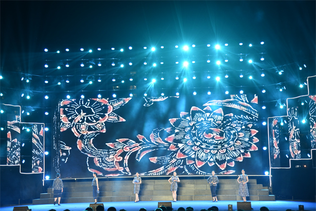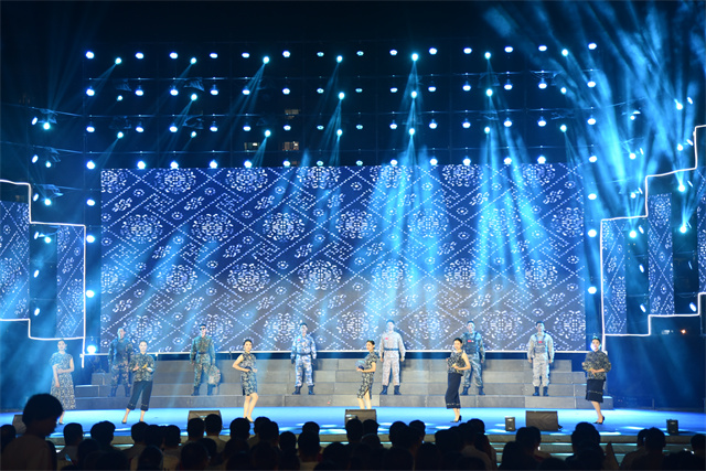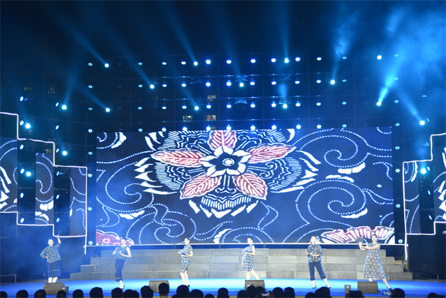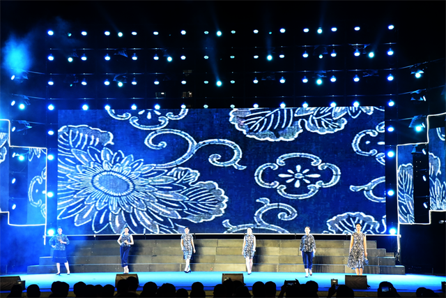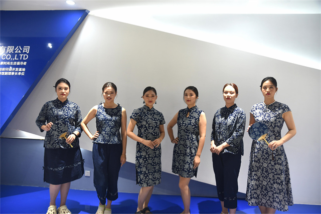 此次文藝匯演中,公司參演人員盡著由公司設(shè)計生產(chǎn)的服裝產(chǎn)品。藍(lán)印花布系列服飾以藍(lán)白分明、清新明質(zhì)、純真素樸、典雅大方的藝術(shù)特點(diǎn)體現(xiàn)了濱州大地濃厚的文化底蘊(yùn)。
