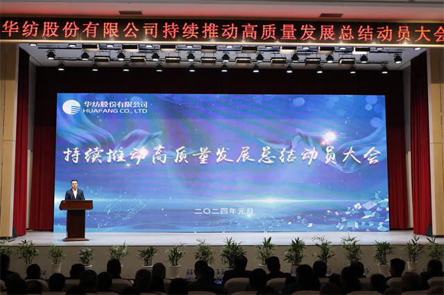 1月1日,華紡股份有限公司持續(xù)推動高質(zhì)量發(fā)展總結(jié)動員大會在會議中心一號會議室隆重召開。市國資委四級調(diào)研員王克寧,公司黨委書記、董事長盛守祥,公司黨委、行政班子成員以及員工代表等五百余人齊聚一堂,總結(jié)2023榮光,展望2024宏圖,表彰優(yōu)秀、激勵先進(jìn)、凝聚共識、匯聚力量,以昂揚的姿態(tài)譜寫公司高質(zhì)量發(fā)展的新篇章。