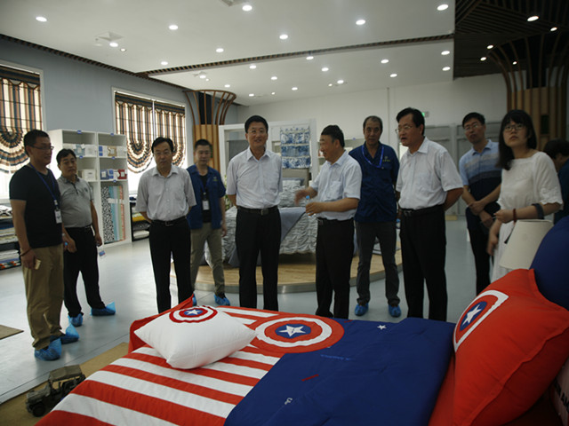 導(dǎo)讀:8月2日,濱州市市委常委、常務(wù)副市長(zhǎng)張凱來(lái)到公司調(diào)研指導(dǎo)工作,公司黨委書(shū)記、董事長(zhǎng)王力民陪同張凱一行參觀(guān)了科技產(chǎn)業(yè)園中的花布產(chǎn)品設(shè)計(jì)部、花二車(chē)間、污水處理、家紡展廳