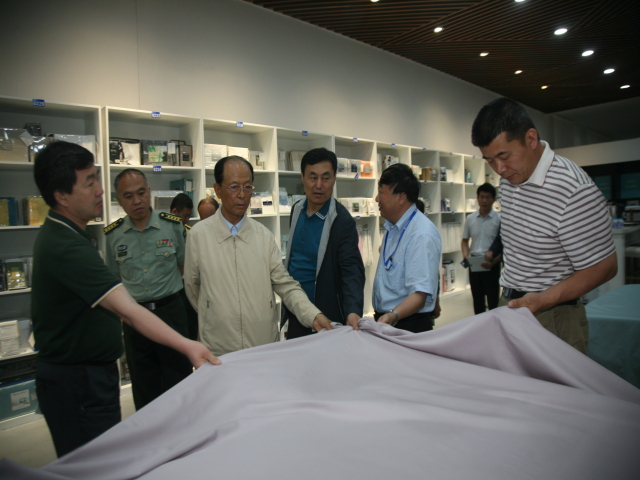 市人大常委會(huì)副主任呂德章,市政協(xié)副主席吳國(guó)瑞、趙建明,濱州軍分區(qū)參謀長(zhǎng)許增全,公司黨委書記、董事長(zhǎng)王力民,副總經(jīng)理孫中然等,陪同張文臺(tái)上將一行參觀了家紡展廳等處所。
