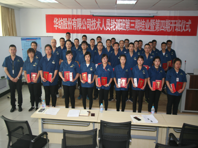 6月18日,公司專(zhuān)業(yè)技術(shù)輪訓(xùn)班第三期結(jié)業(yè)暨第四期開(kāi)班儀式,在公司工程技術(shù)研究院舉行。儀式上,工程技術(shù)研究院副院長(zhǎng)孫紅玉對(duì)第三期輪訓(xùn)工作進(jìn)行了總結(jié);總工程師羅維新宣讀了《關(guān)于對(duì)染整專(zhuān)業(yè)技術(shù)培訓(xùn)班(第三期)馬士國(guó)等35人準(zhǔn)予結(jié)業(yè)的通報(bào)》、《關(guān)于對(duì)染整專(zhuān)業(yè)技術(shù)培訓(xùn)班(第三期)優(yōu)秀團(tuán)隊(duì)、優(yōu)秀學(xué)員的表彰決定》、《關(guān)于對(duì)染整專(zhuān)業(yè)技術(shù)培訓(xùn)班(第四期)學(xué)員組成的通報(bào)》;總經(jīng)理閆英山為第三期輪訓(xùn)班結(jié)業(yè)學(xué)員頒發(fā)結(jié)業(yè)證書(shū),為優(yōu)秀團(tuán)隊(duì)花二車(chē)間小組及馬士國(guó)、李義、陳愛(ài)民等三名優(yōu)秀學(xué)員頒發(fā)獎(jiǎng)狀證書(shū),為第四期學(xué)員頒發(fā)了專(zhuān)業(yè)學(xué)習(xí)書(shū)籍;王金亮、馬士國(guó)、商曉峰分別代表往期學(xué)員、本期學(xué)員和下期學(xué)員發(fā)言;公司黨委書(shū)記、董事長(zhǎng)王力民圍繞堅(jiān)持“求學(xué)、求知、求真、求實(shí)”的作風(fēng)信條做了重要講話。
