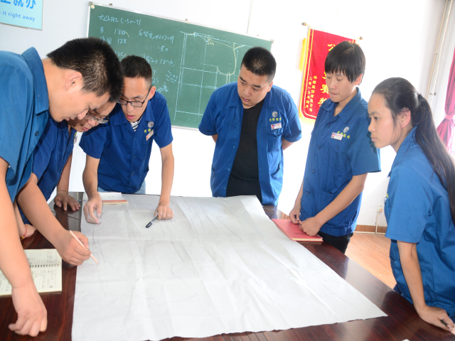 在服裝車間技術(shù)科,經(jīng)常能看到這樣的情景:技術(shù)人員“一言不合”,就到會議室展開討論。每當有新產(chǎn)品要做或者大家有不同意見的時候,都會選擇在會議室的黑板上寫寫畫畫,把打版的每個數(shù)據(jù)寫上畫上,一起來討論每一個數(shù)值及每一條線的弧度,直到制定出合理的方案。