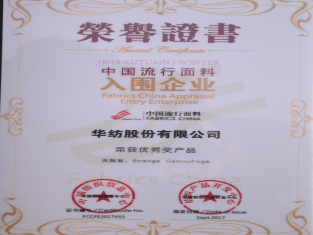 公司一直以來注重產(chǎn)品設(shè)計、研發(fā)與創(chuàng)新,建立起以市場需求為導(dǎo)向的產(chǎn)品開發(fā)體系;再度入圍流行面料企業(yè),彰顯了公司在紡織產(chǎn)品開發(fā)能力的進一步提升。