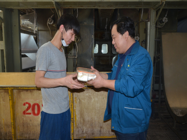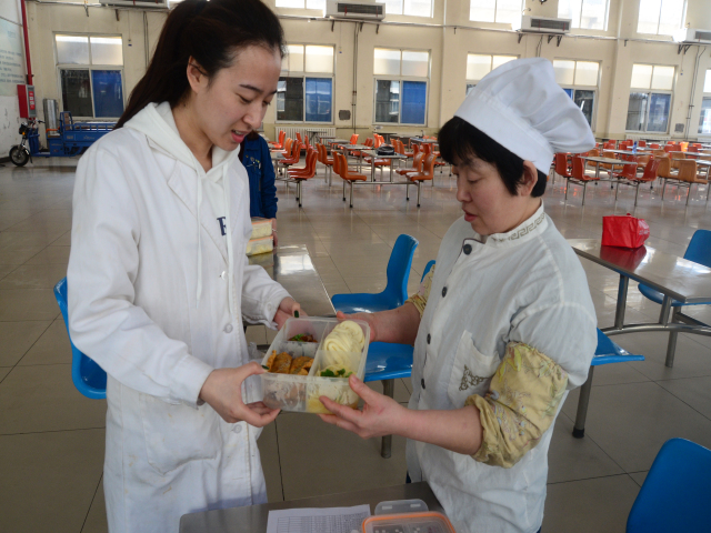 “紅燒肉、炸魚、雞腿、花卷、酸辣土豆絲”,這是公司為3月份過生日的50名單身員工準備的單身員工生日餐。中午下班后,“壽星”們陸續(xù)來到餐廳領(lǐng)取屬于自己的生日餐,研究院李佳奇打開生日餐盒,直言道“好香啊”。對于生產(chǎn)崗位三班員工,車間將統(tǒng)一領(lǐng)取,送到“壽星”所在的崗位。這不,今天中午家紡車間主任王旭洲早早地領(lǐng)到孔慶凡和王亞開兩位員工的生日餐,并送到了他們的手中。