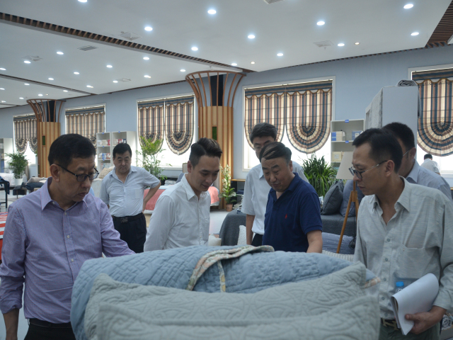 近日,美國某知名公司總經(jīng)理馮海帆、產(chǎn)品發(fā)展部經(jīng)理譚旭輝、產(chǎn)品銷售部經(jīng)理邵嘉琪一行來公司參觀考察。公司董事長王力民陪同客人參觀了花布二車間、花布制版、家紡展廳、智能立體化倉庫、工程技術(shù)研究院、創(chuàng)意中心等處。