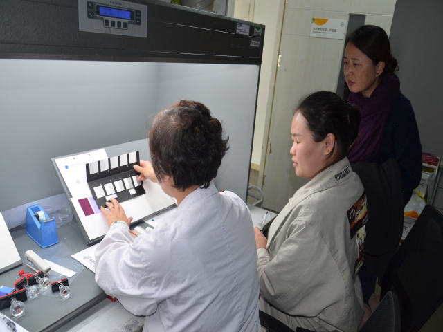 面料公司經(jīng)理王超、家紡公司經(jīng)理成汝海、營銷管理部主任楊霞等,與天祥集團相關(guān)管理者及專業(yè)技術(shù)人員,圍繞檢測服務(wù)、標準統(tǒng)一等內(nèi)容進行了座談交流,公司檢測中心檢測員畢雨和天祥集團專業(yè)人員在現(xiàn)場進行了目光比對,隨后,一起參觀了天祥集團新實驗室。天祥集團紡織品類總經(jīng)理龔澎,天祥集團相關(guān)專家參與座談交流活動。此次活動作為雙方年度系列交流活動之一,體現(xiàn)出雙方在產(chǎn)品檢測、文化交流等方面緊密合作的再推進,對促進雙方共同發(fā)展具有積極的推動作用。