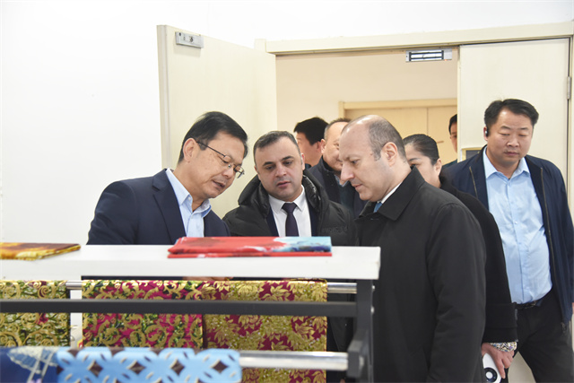 特穆爾·納迪羅格魯公使一行參觀了公司智云中心、檢測中心、綜合辦公區(qū)、服裝面料公司、花布公司、家紡公司、創(chuàng)意中心、研究院、花布車間、面料車間、家紡車間、家紡成品車間、服裝車間等區(qū)域,高度贊賞了公司在科技創(chuàng)新、環(huán)保實(shí)踐、產(chǎn)品多元化、產(chǎn)業(yè)布局等方面的成就。